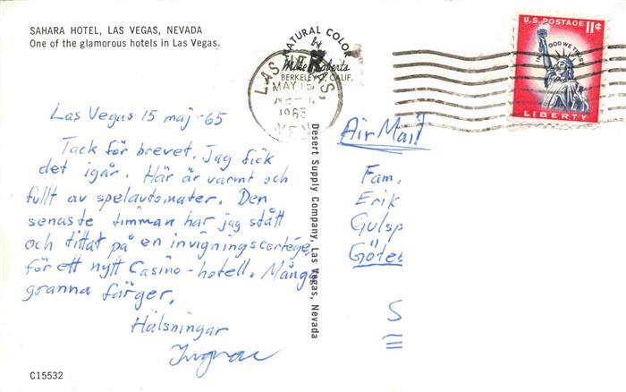 73972569 old postcard LAS VEGAS Nevada USA Sahara Hotel aerial view postalisch gelaufen Fliegeraufnahme Erhaltung siehe scans [FriedD77] KatCode: 14140300000000