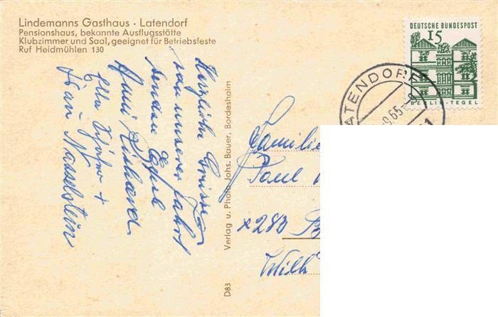 73972280 alte Postkarte Latendorf Schleswig-Holstein Lindemanns Gasthof Erholungsort der Heide postalisch gelaufen Erhaltung siehe scans [FriedD77] KatCode: 11110001060052