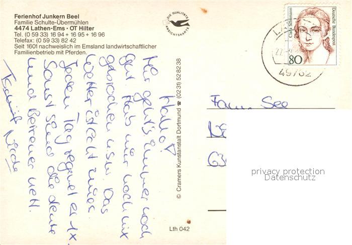 73244631 alte Postkarte Lathen Ems Hilter Bibersee Pferde Reitweg Treck Hilter Berge postalisch gelaufen Erhaltung siehe scans [LiesaD40] KatCode: 11110003454029