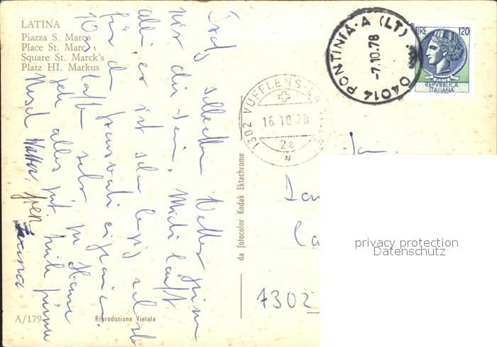 old postcard Latina Piazza S. Marco postalisch gelaufen Erhaltung siehe scans