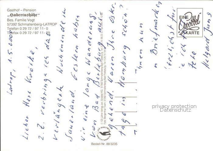71829380 Latrop Sauerland Gasthof Pension Hubertushoehe postalisch nicht gelaufen Erhaltung siehe scans KatCode: 11110005958040