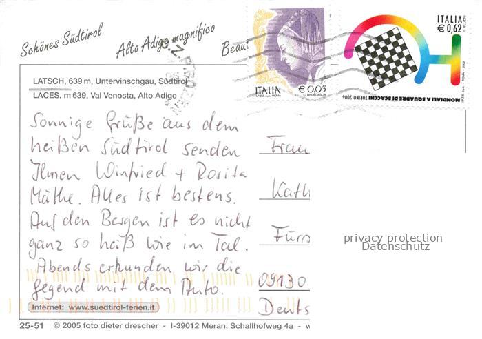 74143687 old postcard Latsch Laces Vinschgau Val Venosta Bolzano IT Alto Adige Untervinschgau postalisch gelaufen Erhaltung siehe scans [SanaeD93] KatCode: 11240