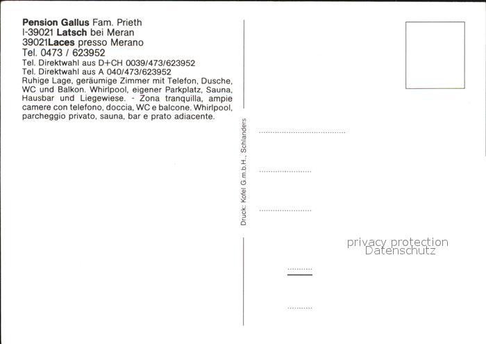 Latsch Vinschgau Pension Gallus postalisch nicht gelaufen Erhaltung siehe scans [KathaD79]
