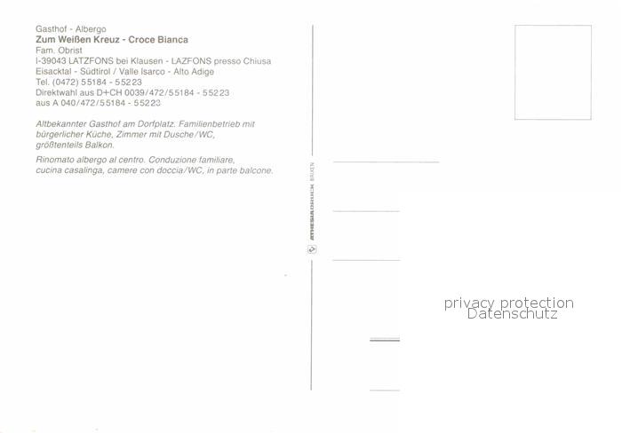 Latzfons Klausen Gasthof Weissen Kreuz postalisch nicht gelaufen Erhaltung siehe scans [KathaD79]