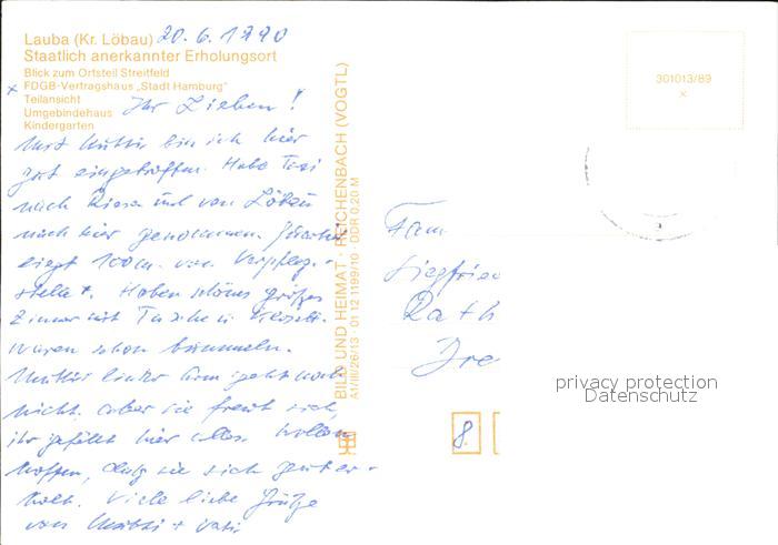 72404524 alte Postkarte Lauba Loebau Streiffeld FDGB Vertraghaus Stadt Hamburg Umgebindehaus Kidergarten postalisch gelaufen Erhaltung siehe scans KatCode: 11110014286210