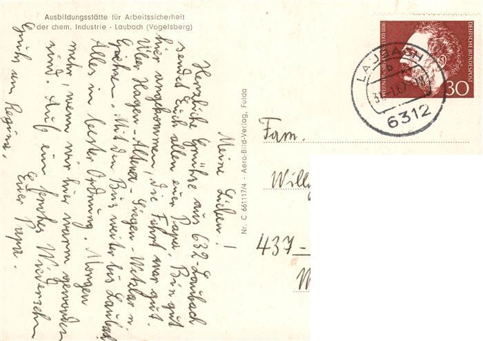 73888017 alte Postkarte Laubach Hessen Aussbildungsstaette fuer Arbeitssicherheit der chem Industrie Tagungsraum Panorama Eingang postalisch gelaufen Erhaltung siehe scans [WerneD78] KatCode: 11110006531010