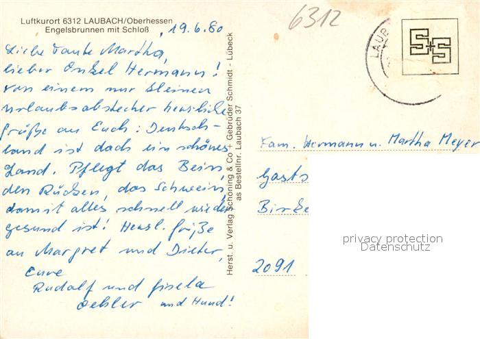 73209230 alte Postkarte Laubach Hessen Engelsbrunnen Schloss postalisch gelaufen Erhaltung siehe scans [NatalD47] KatCode: 11110006531010