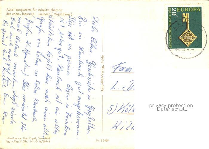 72496067 alte Postkarte Laubach Hessen Fliegeraufnahme Ausbildungsstaette fuer Arbeitssicherheit postalisch gelaufen Erhaltung siehe scans KatCode: 11110006531010