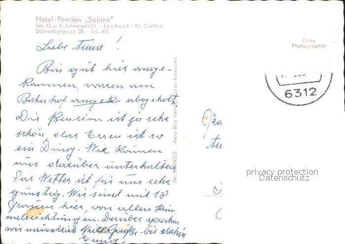 72072592 alte Postkarte Laubach Hessen Hotel Pension Sabine Teilansicht Brunnen postalisch gelaufen KatCode: 11110006531010