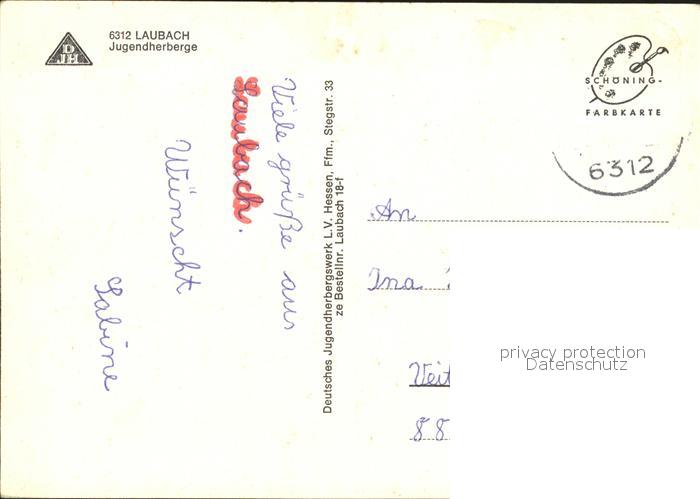 72032866 alte Postkarte Laubach Hessen Jugendherberge postalisch gelaufen Erhaltung siehe scans KatCode: 11110006531010