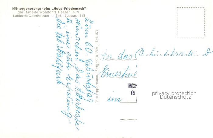 73761732 Laubach Hessen Muettergenesungsheim Haus Friedensruh AWO Hessen postalisch nicht gelaufen Erhaltung siehe scans [FriedD77] KatCode: 11110006531010