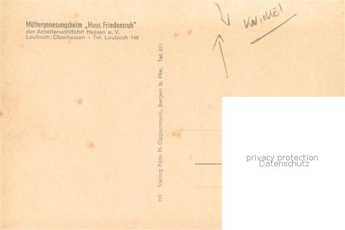 73741008 Laubach Hessen Muettergenesungsheim Haus Friedensruh der AWO Hessen postalisch nicht gelaufen Erhaltung siehe scans [WerneD78] KatCode: 11110006531010