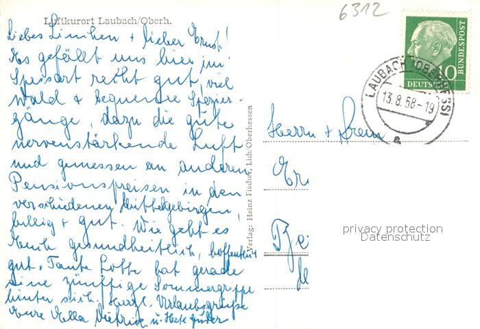 43362510 alte Postkarte Laubach Hessen Ortsansicht postalisch gelaufen Erhaltung siehe scans [WerneD78] KatCode: 11110006531010