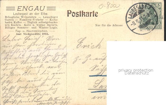 42315728 alte Postkarte Laubegast Engau postalisch gelaufen Erhaltung siehe scans KatCode: 11110014262000