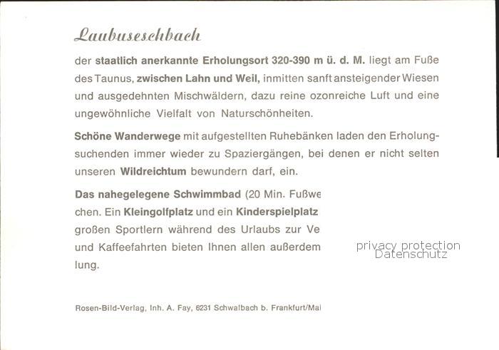 72113168 Laubuseschbach Haus Emmy Pension postalisch nicht gelaufen Werbekarte (keine Postkarte) Erhaltung siehe scans KatCode: 11110006533018