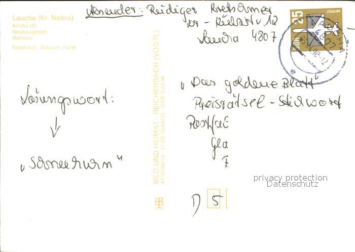 72461700 alte Postkarte Laucha Unstrut Kirche Rathaus Neubaugebiet postalisch gelaufen Erhaltung siehe scans KatCode: 11110015084285