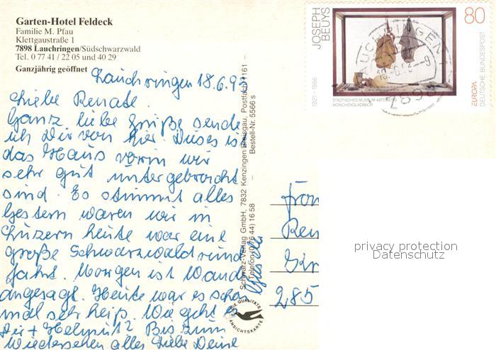 73324301 alte Postkarte Lauchringen Hotel Feldeck Schwarzwald postalisch gelaufen Erhaltung siehe scans [FriedD77] KatCode: 11110008337065