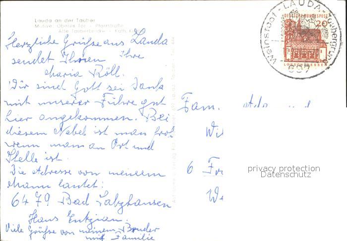 72098081 alte Postkarte Lauda-Koenigshofen Fliegeraufnahme Oberes Tor Pfarrstrasse postalisch gelaufen Erhaltung siehe scans KatCode: 11110008128139