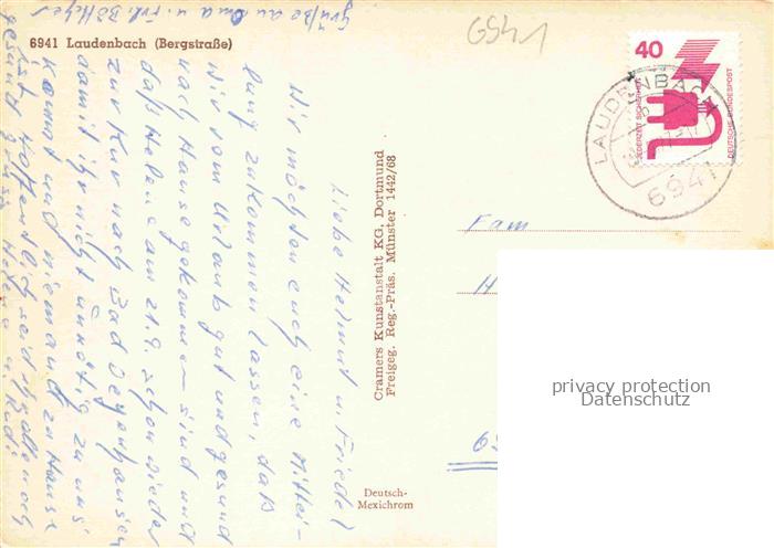 74035798 alte Postkarte Laudenbach Bergstrasse Fliegeraufnahme postalisch gelaufen Erhaltung siehe scans [WerneD78] KatCode: 11110008226040