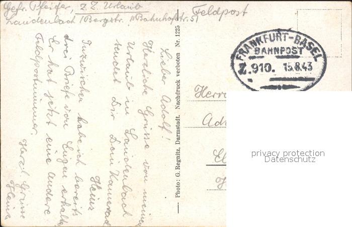 31840607 alte Postkarte Laudenbach Bergstrasse Schulhaus Kriegerdenkmal postalisch gelaufen KatCode: 11110008226040