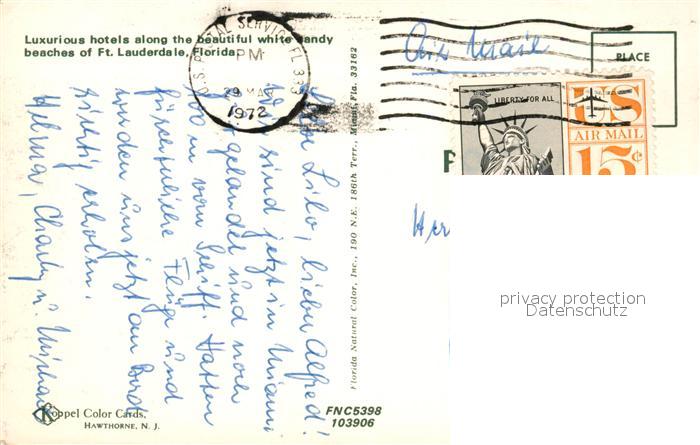 73082566 old postcard Lauderdale Florida Fliegeraufnahme Luxushotels postalisch gelaufen Erhaltung siehe scans [KathaD81] KatCode: 14140