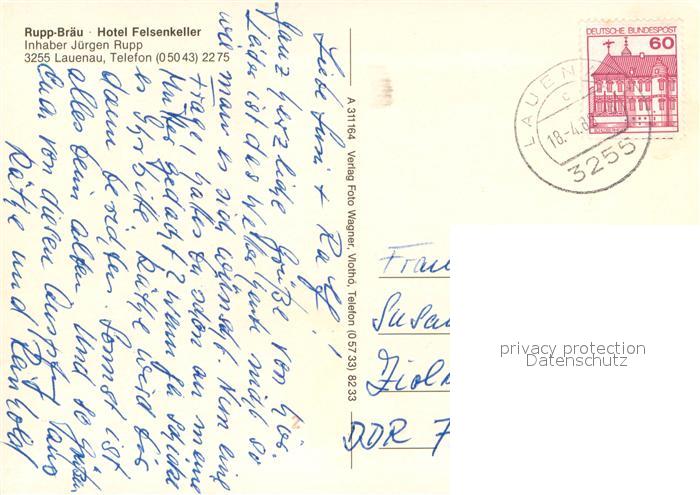 73723793 alte Postkarte Lauenau Hotel Felsenkeller Restaurant Terrasse Landschaftspanorama postalisch gelaufen Erhaltung siehe scans [FriedD77] KatCode: 11110003257018