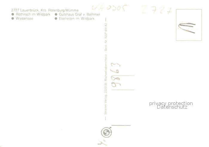73672531 Lauenbrueck Rothirsch im Wildpark Gutshaus Graf von Bothmer Wiesensee Eselreiten postalisch nicht gelaufen Erhaltung siehe scans [FriedD77] KatCode: 11110003357033