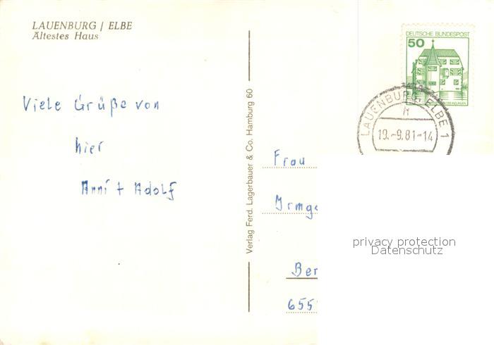 73727642 alte Postkarte Lauenburg Elbe aeltestes Haus postalisch gelaufen Erhaltung siehe scans [WerneD78] KatCode: 11110001053083