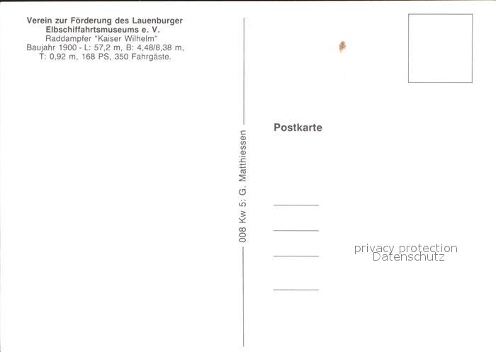 72141681 Lauenburg Elbe Elbschiffahrtsmuseum Raddampfer Kaiser Wilhelm postalisch nicht gelaufen Erhaltung siehe scans KatCode: 11110001053083