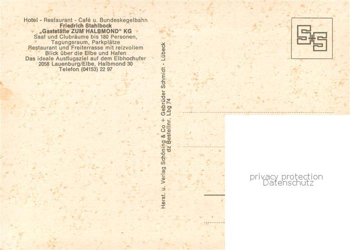 73759807 Lauenburg Elbe Gaststaette Zum Halbmond Kegelbahnen Gastraum postalisch nicht gelaufen Erhaltung siehe scans [FriedD77] KatCode: 11110001053083