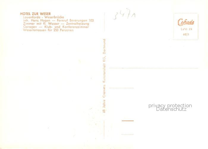 73866782 Lauenfoerde Hotel zur Weser Bar Gaststube Weserbruecke Fliegeraufnahme postalisch nicht gelaufen Erhaltung siehe scans [WerneD78] KatCode: 11110003255026