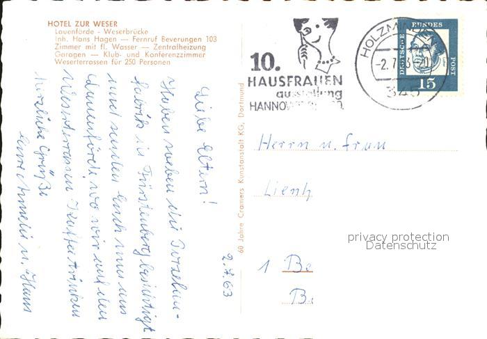 72530096 alte Postkarte Lauenfoerde Hotel zur Weser postalisch gelaufen Erhaltung siehe scans KatCode: 11110003255026
