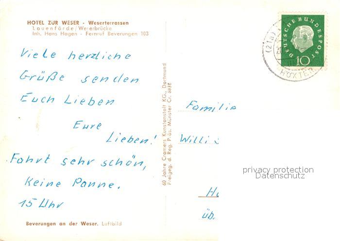 73258208 alte Postkarte Lauenfoerde Weserbruecke Fliegeraufnahme postalisch gelaufen Erhaltung siehe scans [WerneD78] KatCode: 11110003255026