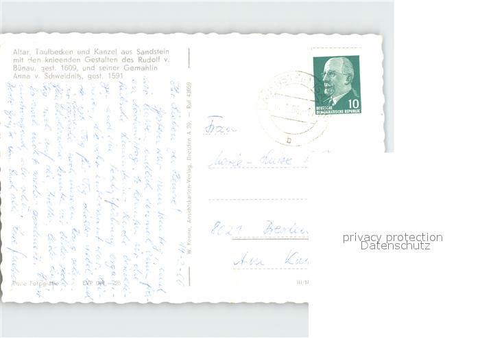 72362232 alte Postkarte Lauenstein Erzgebirge Bildwerke der Kirche innen postalisch gelaufen Erhaltung siehe scans KatCode: 11110014290140