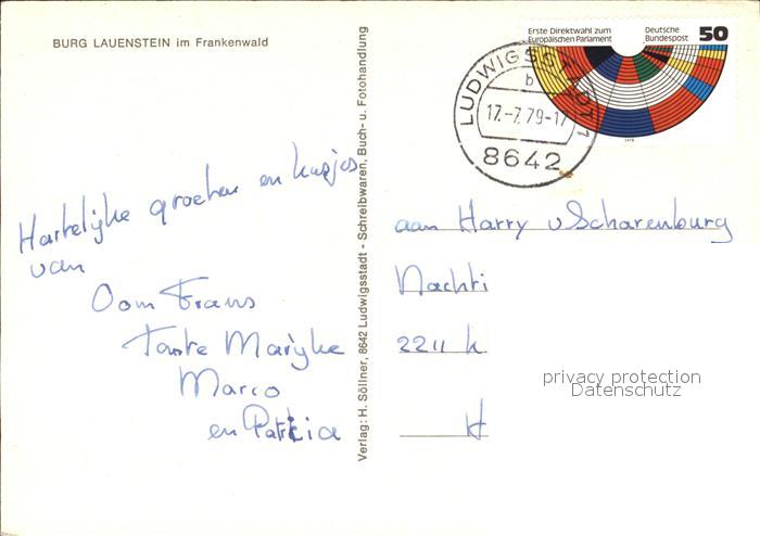 72519623 alte Postkarte Lauenstein Oberfranken Burg Die Weisse Frau postalisch gelaufen Erhaltung siehe scans KatCode: 11110009476152