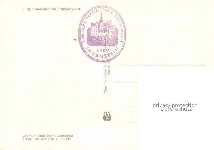 72799350 Lauenstein Oberfranken Burg Lauenstein im Frankenwald Fliegeraufnahme postalisch nicht gelaufen Erhaltung siehe scans [FriedD77] KatCode: 11110009476152