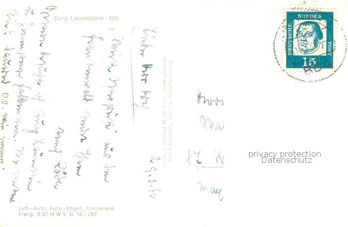 73708848 alte Postkarte Lauenstein Oberfranken Burg Lauenstein postalisch gelaufen Fliegeraufnahme Erhaltung siehe scans [FriedD77] KatCode: 11110009476152