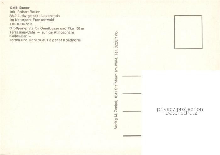 73651236 Lauenstein Oberfranken Cafe Bauer Gastraum Terrasse Naturpark Frankenwald postalisch nicht gelaufen Erhaltung siehe scans [FriedD77] KatCode: 11110009476152