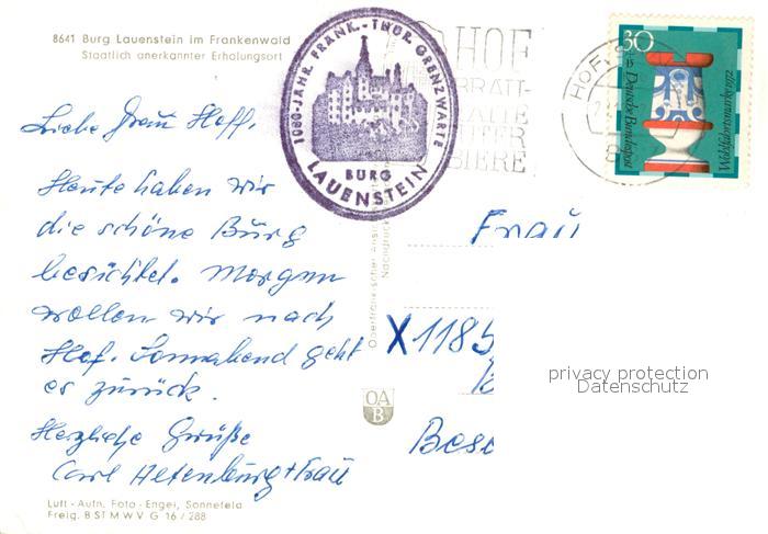 73743978 alte Postkarte Lauenstein Oberfranken Fliegeraufnahme Burg Lauenstein postalisch gelaufen Erhaltung siehe scans [LiesaD40] KatCode: 11110009476152