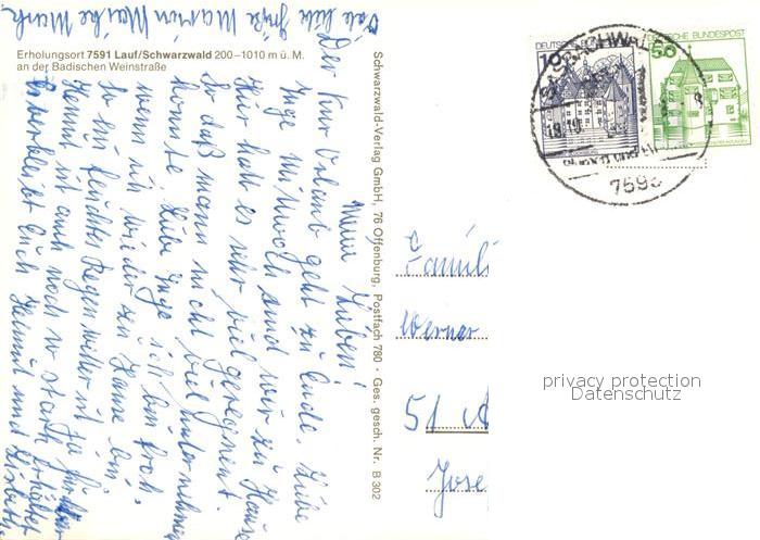 73197787 alte Postkarte Lauf Baden Burg Neu-Windeck Glashuette Rathaus postalisch gelaufen Erhaltung siehe scans [NatalD47] KatCode: 11110008317068