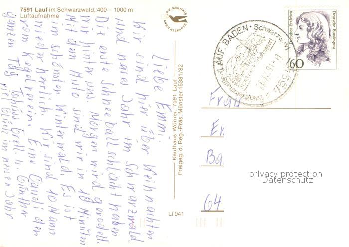 73644755 alte Postkarte Lauf Baden Fliegeraufnahme postalisch gelaufen Erhaltung siehe scans [WerneD78] KatCode: 11110008317068