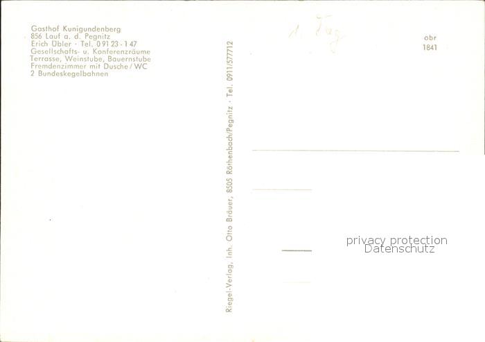72108767 Lauf Pegnitz Gasthof Kunigundenberg postalisch nicht gelaufen Erhaltung siehe scans KatCode: 11110009574138