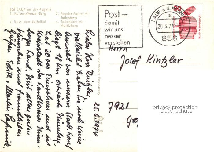 73237620 alte Postkarte Lauf Pegnitz Kaiser-Wenzel-Burg Spitalhof Pegnitz mit Judenturm Moritzburg postalisch gelaufen Erhaltung siehe scans [LiesaD40] KatCode: 11110009574138