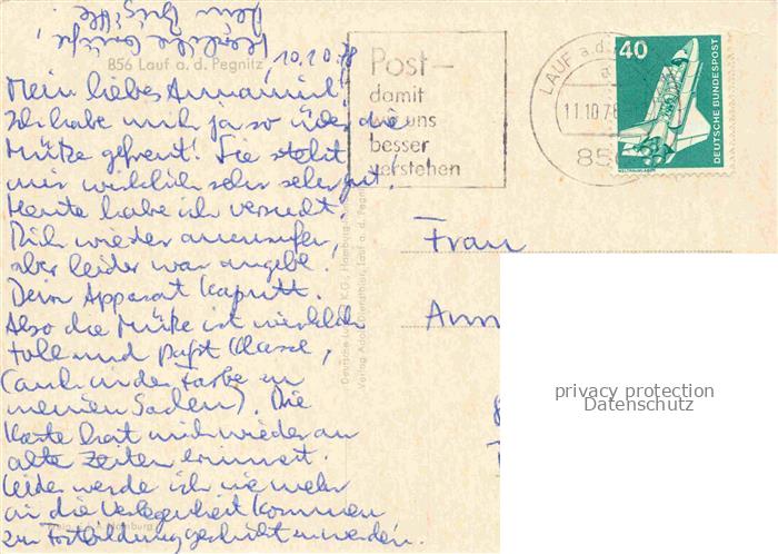74137136 alte Postkarte Lauf Pegnitz Nuernberger Land Bayern Fliegeraufnahme postalisch gelaufen Erhaltung siehe scans [FriedD77] KatCode: 11110009574138