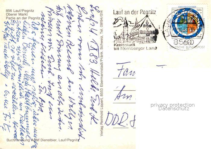 72648944 alte Postkarte Lauf Pegnitz Oberer Markt Pegnitzpartie postalisch gelaufen Erhaltung siehe scans [LiesaD40] KatCode: 11110009574138