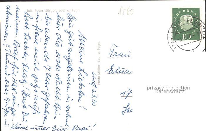 31716884 alte Postkarte Lauf Pegnitz Restaurant Schwarzer Baer Peter Soergel postalisch gelaufen Erhaltung siehe scans KatCode: 11110009574138