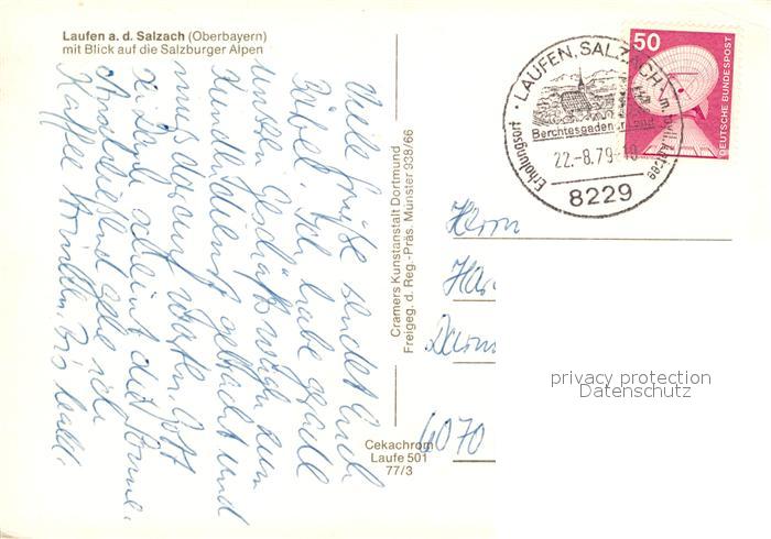73177872 alte Postkarte Laufen Salzach mit Blick auf Salzburger Alpen Fliegeraufnahme postalisch gelaufen Erhaltung siehe scans [FriedD77] KatCode: 11110009172122