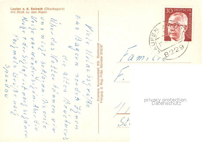 73084367 alte Postkarte Laufen Salzach mit Blick zu den Alpen Fliegeraufnahme postalisch gelaufen Erhaltung siehe scans [FriedD77] KatCode: 11110009172122