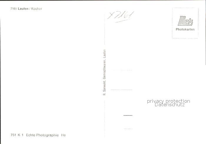 41775785 Laufen Sulzbach-Laufen Kocher postalisch nicht gelaufen Erhaltung siehe scans KatCode: 11110008127079