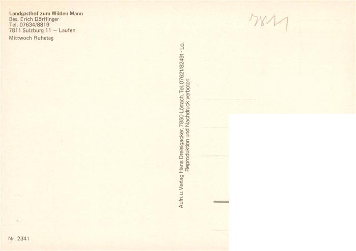 73929395 Laufen Sulzburg Landgasthof Zum Wilden Mann Gastraum postalisch nicht gelaufen Erhaltung siehe scans [FriedD77] KatCode: 11110008315111